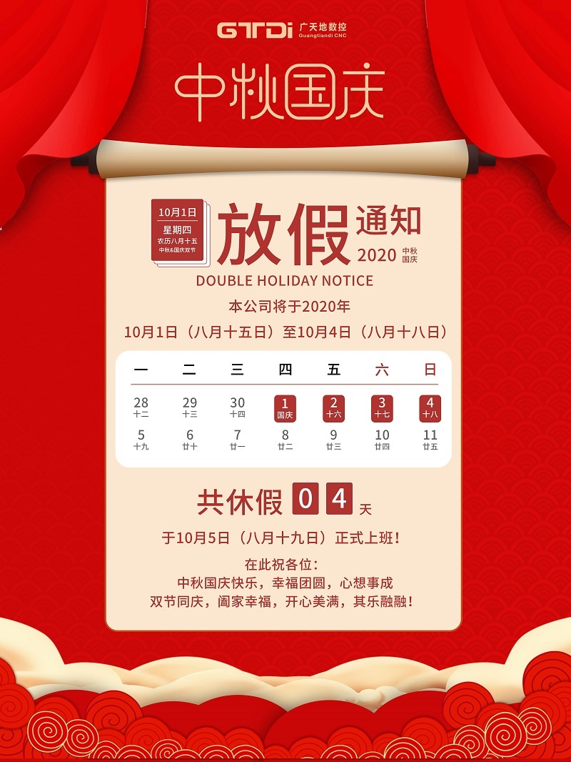 米兰体育milan数控2020年国庆中秋节放假通知