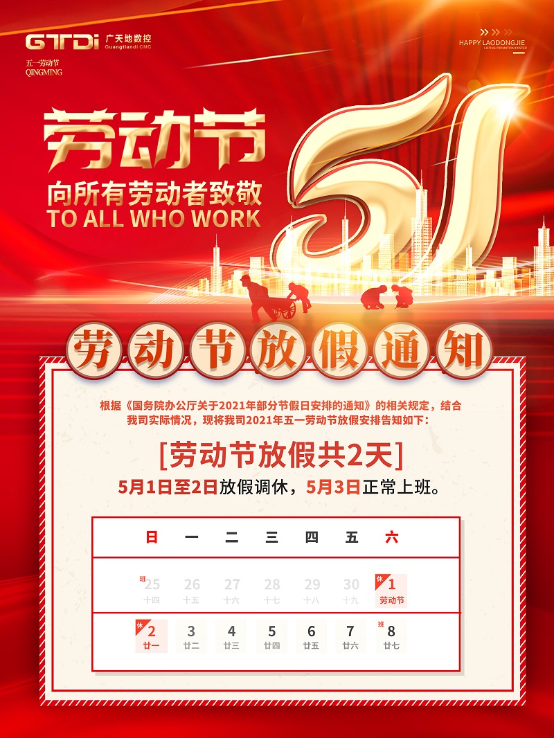 米兰体育milan数控2021年五一劳动节放假通知