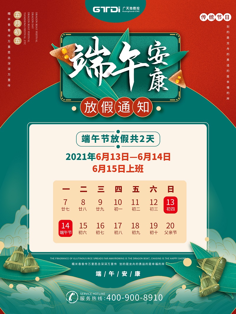 根据国务院办公厅《关于2021年部分节假日安排的通知》,并结合我司实际情况,米兰体育milan数控2021年端午节放假安排如下: