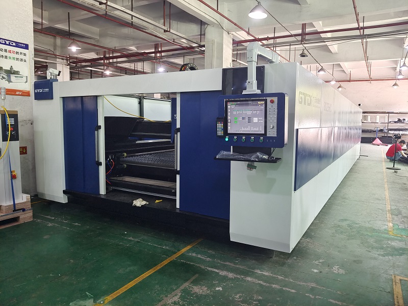 这台8025HC大幅面光纤激光切割机通过在厂反复测试检验合格后,将要跨越上千公里,去服务于它的新主人了。该设备采用12000W激光器,可以切割碳钢板厚度高达50mm,完全满足客户需求;交换工作台模式,一个工作台在切割工作的时候,另外一个工作台在上下料,大大节省时间;全包围设计,避免加工过程中发生意外,确保安全;机器前面均装有摄像头,可在外面实时监控切割过程。