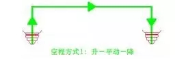 压缩空程时间,可提高机器的效率。如果将次第完成的三个动作,变为“同时”完成,可缩短空程时间:切割头从点A开始向点B移动时,即同时上升;接近点B时,同时下降。如下图所示。